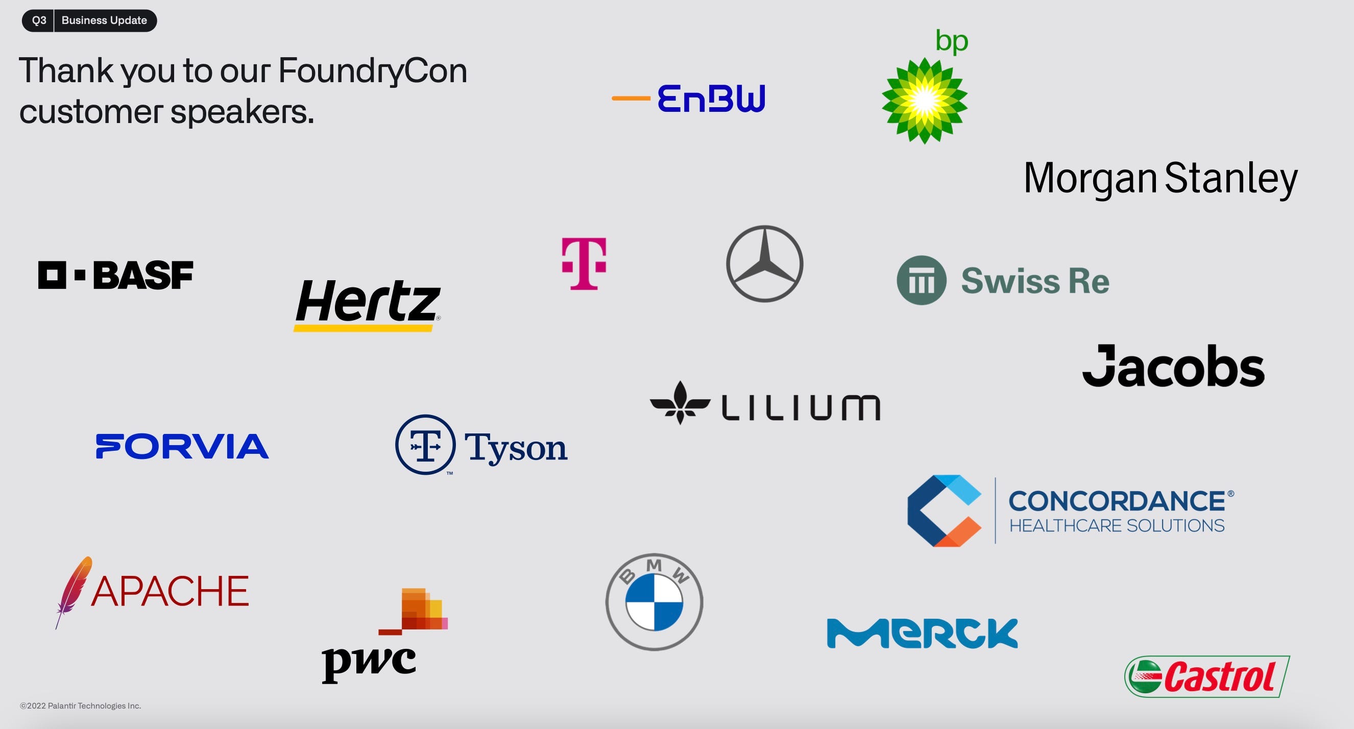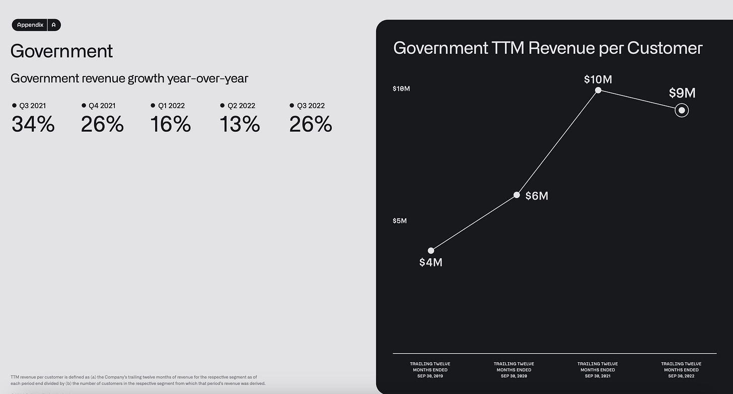That'd be survival instinct and I wouldn't blame them. We just need to be better at processing data and making it actionable in the shortest time possible. And here is when Palantir enters the field. Today's Q3 results show the US Government not only maintains their use of Palantir but keeps expanding their reliance on the company and Gotham capabilities adding 8 new USG departments to the list of clients.